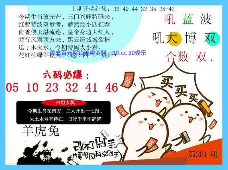 281期:★绝杀三肖★【虎猪牛】开:羊47