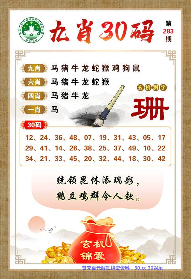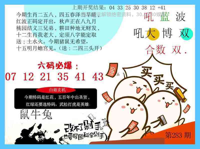 283期:★绝杀三肖★【虎兔马】开:鸡45